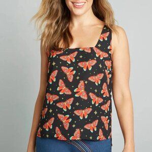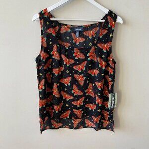 Modcloth Hip to be Square Neck Black Red Butterfly Tank Top Women’s Large NWT