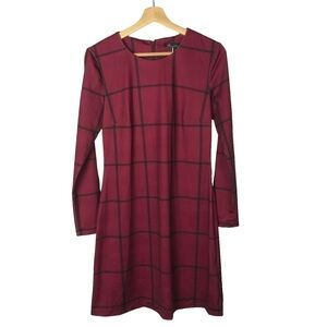 Modcloth Hutch Merlot Red Windowpane Plaid Long Sleeve Mini Dress S