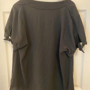 This vintage-inspired blouse from Modcloth has a v-neck and tie detail at the sleeves.