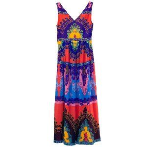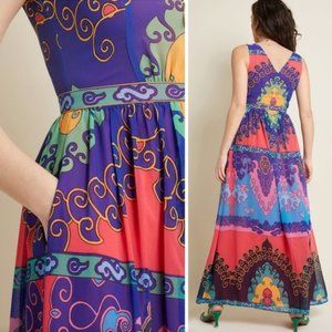 ModCloth Sleeveless Maxi Dress with V-neck in bold mixed print. Side zip with hook and eye closure.