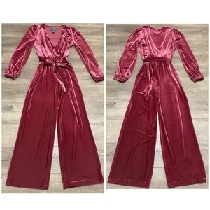 Modcloth Jumpsuit Wide Leg Velvet Ribbed Long Sleeve Burgundy Sz Small
