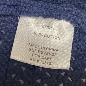 Open knit hooded cardigan from Modcloth. Navy, long sleeve, banded hem and cuffs. Women’s size extra small. Gently worn. No rips or tears. Smoke free pet free home.