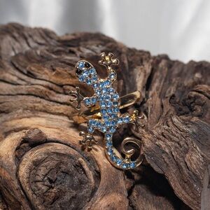✨Modcloth Leia Blue Gold Rhinestone Lizard Ring