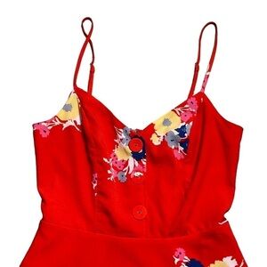 In good condition •Modcloth •Vibrant Red •Floral Print •Button Bust •Mini Dress •Side Seam Pockets •Sleeveless • Adjustable Straps