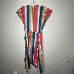 Modcloth Liza Luxe Multi-Color Stripe VNeck Sleeveless Tie Wrap Midi Dress XS