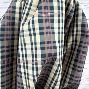 Modcloth Madras Plaid Colorblock Puff Sleeve Sweater. Such a fun and unique piece. Navy blue stretch ribbed sweater with a a puffy plaid sleeve with a ribbed bell flare cuff with contrast candy cane striping. Reminds me of Japanese streetwear piece. There is no brand, size or material tag but this can fit a size up to a Medium+ comfortably. There is a lot of easy stretch. Flat measurements below from unstretched to stretched.