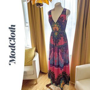 Modcloth Maxi Dress in Indigo Rainbow with Pockets