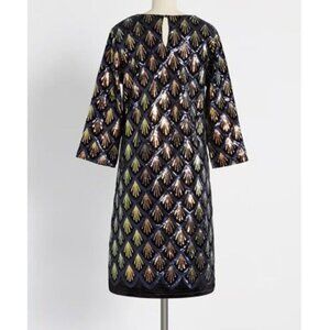 Modcloth x Molly Bracken Magnificence Beneath the Midnight Fireworks Shift Dress in Navy/Gold Sequin. Size XS.
