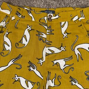 Modcloth NWOT Women's Size 12 Linen Blend Wide Leg Crop Pants All Over Cat Print