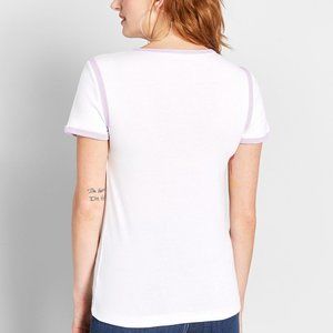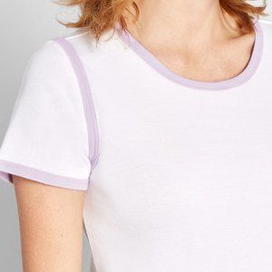 Relaxed Throwback Ringer Tee by Modcloth in White / Lavender. Size S.