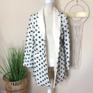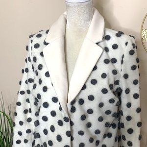 Ensuring recognition for your aesthetic genius is all in a day's work for this wool coat! Complimenting the ivory hue of this statement outerwear are 3D grey dots and a smooth white lining, which punch up its timeless, (mock) pocketed silhouette in a way that expertly reps your sartorial savvy.
