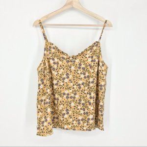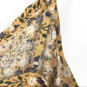 Why go simple for the sunny season when you can go extra-sweet in this linen-blend tank top? This mustard yellow, white, dark green, and purple floral top flaunts adjustable straps, a petite ruffle and a tie along its keyhole-accented neckline, and petite side vents. You’ll love how you feel in this fun piece!