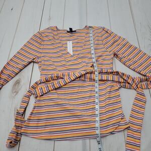 Adorable Modcloth "Betting on myself" striped rainbow top! Long sleeve with a wrap/ tie waist and a V neck. NWT, size small.