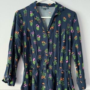 Modcloth Navy Blue Cactus Print Romper Size Small