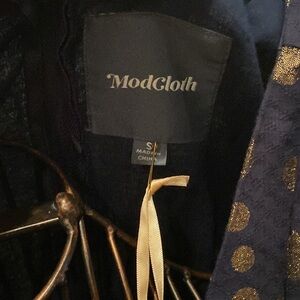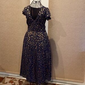 Modcloth Navy Blue and gold polka dot Only You dress. Fully lined with pockets
