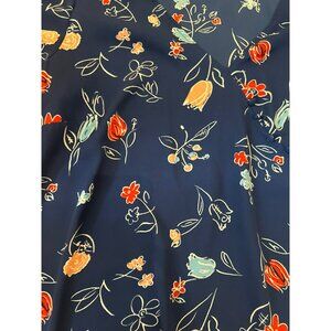 Chic navy blouse with vibrant floral print. Short sleeves. Perfect for casual outings.