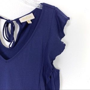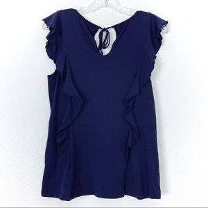 Modcloth casual navy ruffle tank top. Ruffle sleeves. V-neck. Keyhole tie in the back. Size Medium.