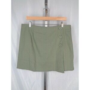 Modcloth Olive Green Linen Blend Faux Wrap Skirt Size 14 New