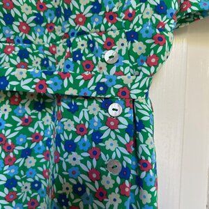 Cute, femininine, flowy wrap-style midi dress. So cute! Perfect for brunch, a day out or just about any occasion. Say hello to sunshine and sweet simplicity in the Petal & Promise Wrap Dress. This Button Detail Short Sleeve Faux Wrap Dress is a garden daydream brought to life, featuring a vibrant allover floral print and an effortlessly flattering silhouette. The faux wrap design and dainty waist tie create a cinched look without the fuss, while subtle button details add a darling vintage touch.