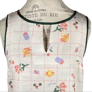Modcloth Picnic Print 3 Tie Keyhole Sleeveless Blouse Size Small Picnic Food NWT