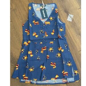 Modcloth Pinata Llama Sleeveless V-Neck Button Front Tunic Top Blue XXS NWT