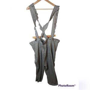 Modcloth Plaid Cropped Pants Ruffle Suspenders overalls wide leg, size 4X