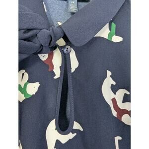 Modcloth Positive First Impressions Polar Bear Tie Neck Short Sleeve Blouse. Peter Pan collar, buttoned keyhole, relaxed fit.