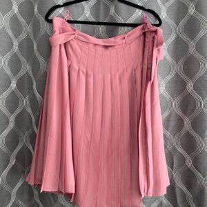 Dusty pink chiffon pleated skirt with self-tie sash belt, no stretch, invisible side zip with hook closure, lined.
