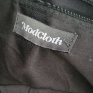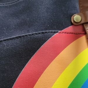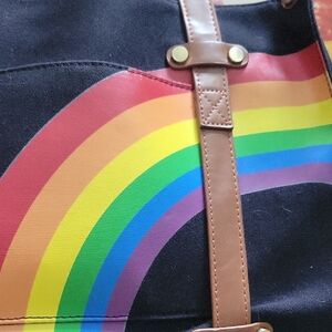 Stylish Modcloth tote with vibrant rainbow design. Durable canvas with brown leather straps. Perfect for everyday use.