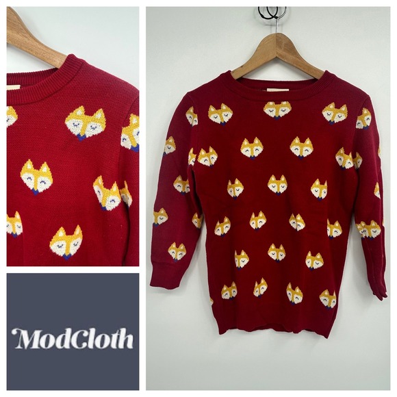 Modcloth Red Fox Pattern Sweater