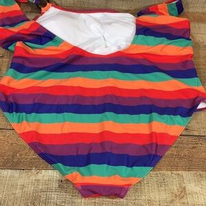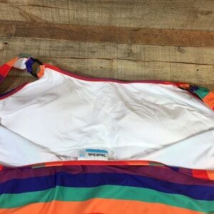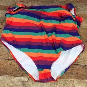 Modcloth Red Purple Striped One Piece Swimsuit Womens 4X. No wire. Removable padding. 80% Polyester, 20% Elastane. Pre-owned Condition- no flaws, no rips, stains, or holes.