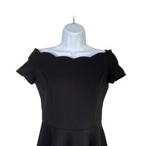 Modcloth Retro Timeless Favorite Scalloped Neckline Dress Black Size Small