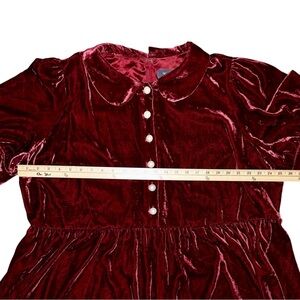 ModCloth rich burgundy velvet dress. Pre owned great condition no signs of wear fully functional buttons hidden zipper back collar size 26W see photos for measurements
