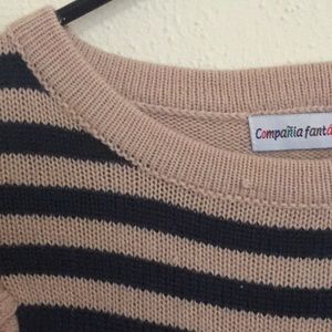 This is such a cute sweater that is well loved but still has a lot of life in it! Some pilling and a tiny snag at the top (see pics!) and the price reflects that! Very twee! From Modcloth and the brand is compania fantastica.