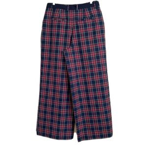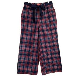 Modcloth Savannah Plaid Tartan Wide Leg Pant Trouser High Rise Holiday Belt Blue