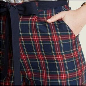 Modcloth Savannah Plaid Tartan Wide Leg Pant Trouser High Rise Holiday Belt Blue