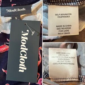 Modcloth Instant Fit Relaxed Fit T-shirt Flamingos Navy Blue Pink Size Small. Adorable print soft short sleeves tee. Has stretch. Relaxed-fit Tshirt from ModCloth namesake label. Wide neckline, ultra-soft jersey knit, hand-painted, 50s-inspired lawn flamingo print, navy blue top. Machine Wash. 95% Rayon 5% Spandex. New With Tags.
