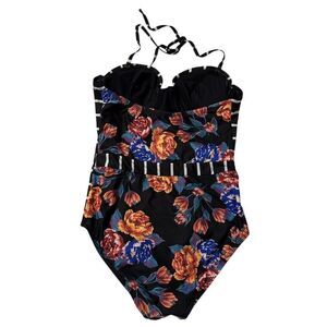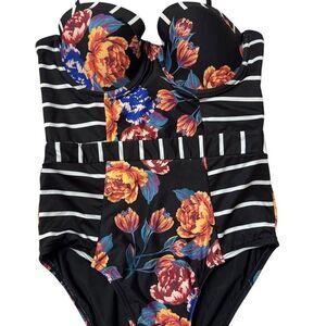 Modcloth Size MEDIUM The Harper Floral and Striped One-Piece Swimsuit