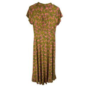 Modcloth Size Medium Green Pink Floral Hi Lo Dress Retro 40s