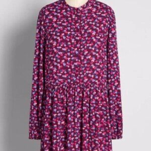 Modcloth Sugar Hil lSmock Dress - Confetti Hearts Long Sleeve Dress Pockets