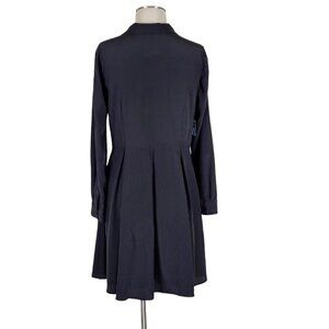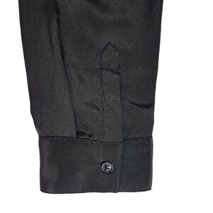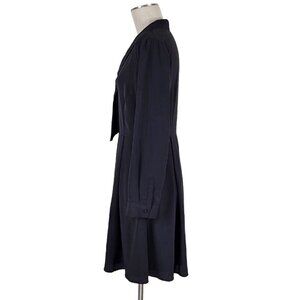 Modcloth Swing Dress Size 12 Tie Neck Pleated Side Seam Pocket Long Sleeve Black