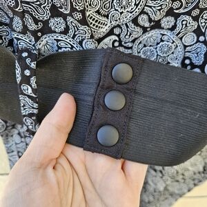 Bodycon pencil dress with wide elastic black belt. Black with white sugar skull print all over, and black trim and straps. In good used condition with no known flaws. Zips up the back. Has a little bit of stretch.
