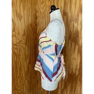 Modcloth Tank Top Pullover Lace Tie Strappy Suplice V-Neck Striped Sz XL