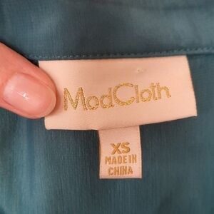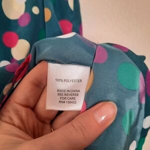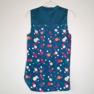 Modcloth Teal Satin Multi Polkadot Sleevless Blouse XS