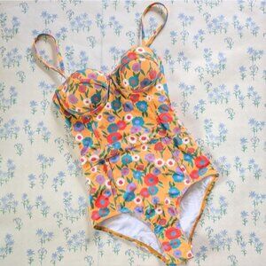 Modcloth The Pippa One Piece Swimsuit in Yellow Floral. Size XS.