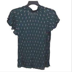 Modcloth Top Dark Green Sheer Metallic Detail Size Medium Bin S