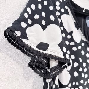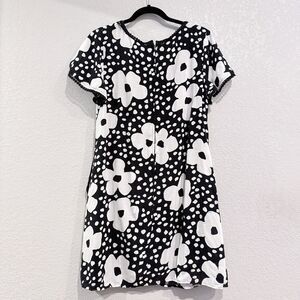 Modcloth Whimsical Wildflower Floral Dress Shift Black White Retro Pockets Large