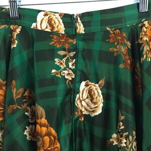 * Features: Retro Vintage Floral Skirt with Modern Plaid/ Buffalo Check Background. Hunter Green with Gold and Brown Tones and a Full A-Line Skirt that is flowy and moves. Midi in Length Has Pockets!!!