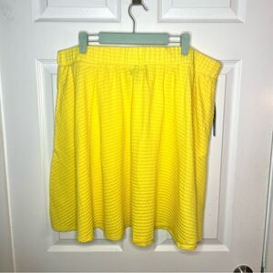 Modcloth Winner's Circle Skater Skirt Textured Mini Skirt Lemonade Yellow ALine Size 1X NWT. Pull-on style, playful skater skirt, sretchy, textured knit in a vibrant yellow hue, high-rise circle skirt, elasticized waistband, handy side pockets, breathable cotton-blend construction, and above-the-knee silhouette. 79% Cotton, 21% Poly. Fabric provides stretch. Machine wash delicate, lay flat to dry. Flared A-Line Full. New with tags. I’m wearing a different size in the photos and 5’5 for reference in length.