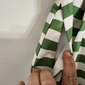 Add a touch of elegance to your wardrobe with this Modcloth A-line skirt. Featuring a green and white striped pattern, this knee-length skirt is perfect for any occasion, be it casual, formal, or business. The skirt is made of a blend of polyester, rayon, and cotton, with a chiffon fabric type that adds a relaxed and tropical feel. It has pleated accents and pockets on each side, making it not just stylish but functional too. The skirt has a mid-rise and zip and hook loop closure, making it easy to wear and machine washable for easy maintenance. This skirt is perfect for those who love the vintage look, with a preppy, school, or 90s style that is both contemporary and classic chic.